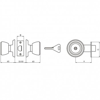 Fecho tubular com maçaneta exterior fixa com chave e interior livre. FUNCIONAMENTO: Por fora com a chave, por dentro com a maçaneta. Recomendado para portas exteriores de habitação, escritórios, quartos de hotel, etc.