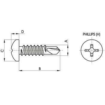 Parafuso autoperfurante para chapa de cabeça cilíndrica, encaixe Phillips (H), zincado.