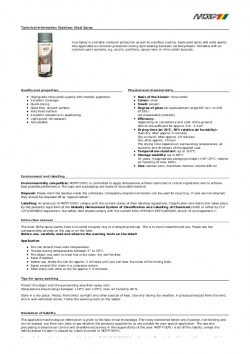 Verniz acrílico de secagem rápida. Aparência de aço inoxidável da superfície. Protege contra oxidação e ferrugem. Ideal após a soldagem. Adequado para metal, madeira, plástico, cerâmica, vidro, etc. Resistente a arranhões, choques e golpes. INSTRUÇÕES DE USO: A superfície deve estar limpa, seca, isenta de ferrugem e graxa. Proteja as superfícies que não devem ser pintadas! Proteja os arredores do excesso de pulverização. Agite o frasco 2 min. Spray de teste. Pulverize várias camadas finas. Distância de pulverização aprox. 25 cm. Pó seco em aprox. 10 minutos. Secagem total em aprox. 24 horas. Não aplicar sobre superfícies com pintura sintética.
