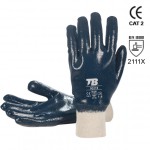 Luva nitrílica extra azul, com suporte em jersey, costas forradas e punho elástico. Recomendado para manuseio de peças com graxa e construção.